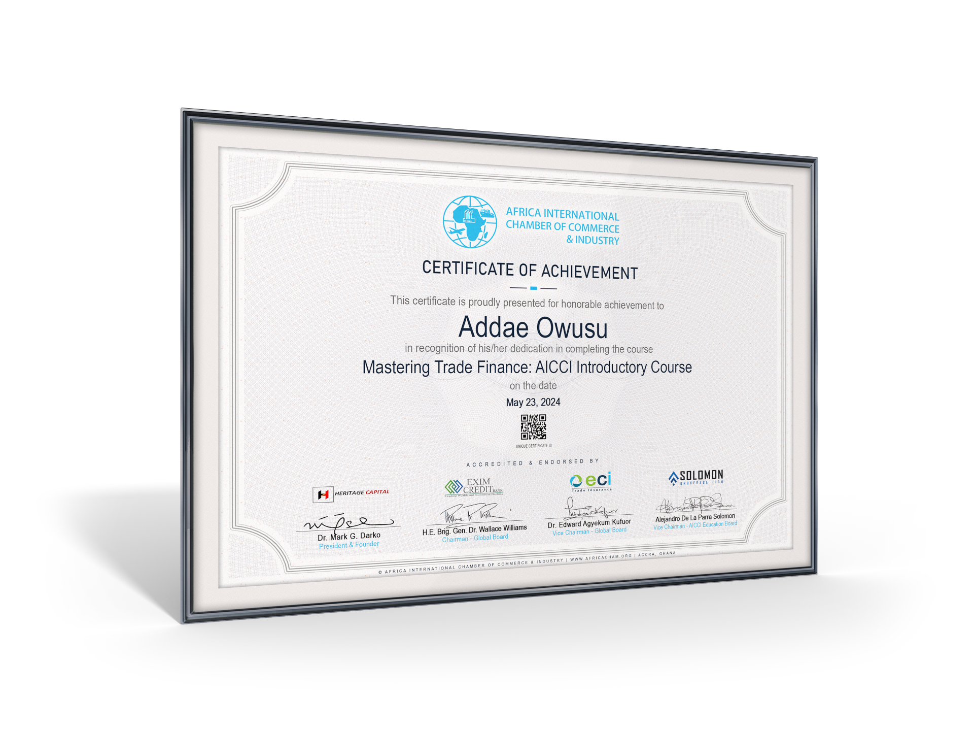 - Certificate of Completion: Upon successful completion of the course, participants receive a certificate of completion from AICCI, recognizing their mastery of trade finance fundamentals.
